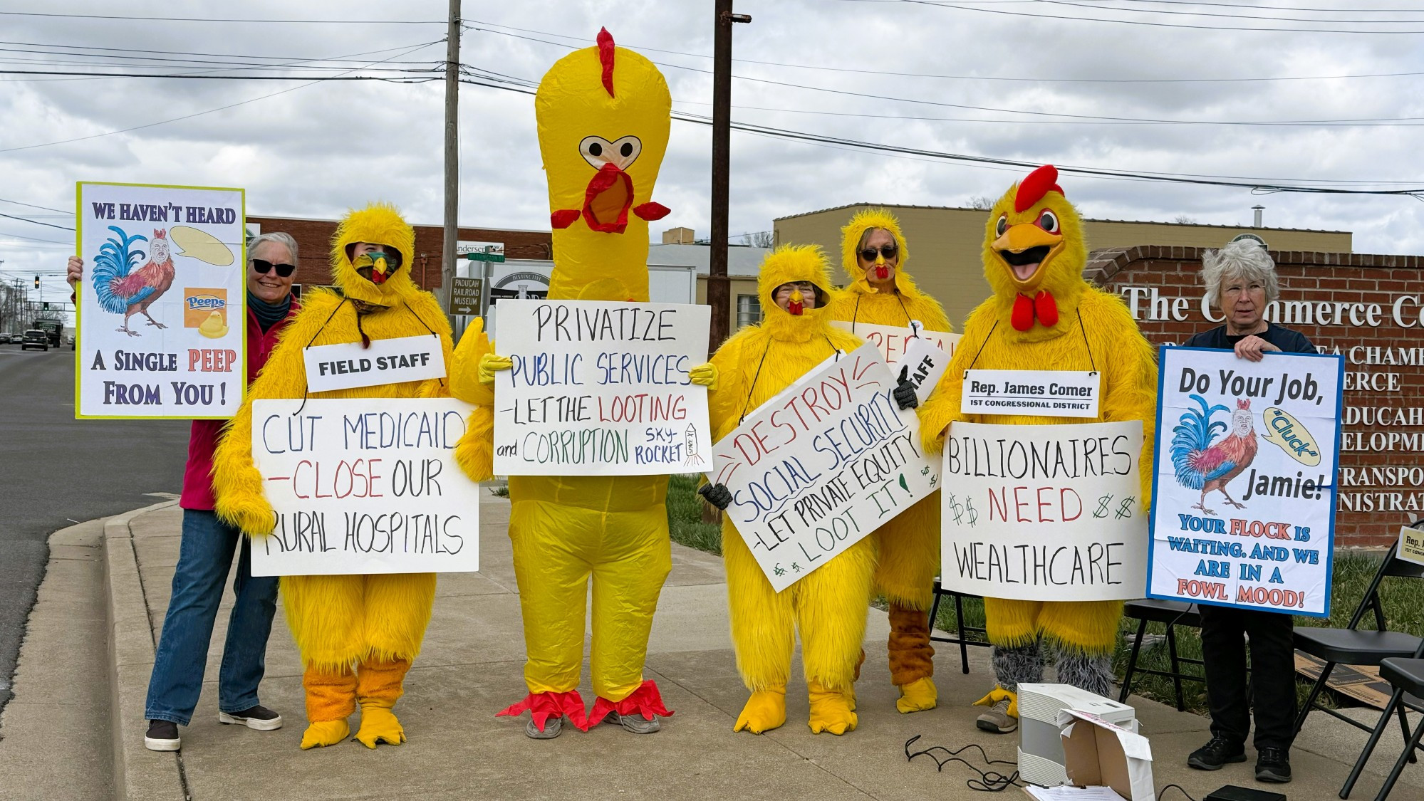 You may have seen us out in the community recently. We have been actively trying to get Comer to host a town hall for months. If you’ve got an idea for an action or notice a need for visible resistance in the community, reach out!