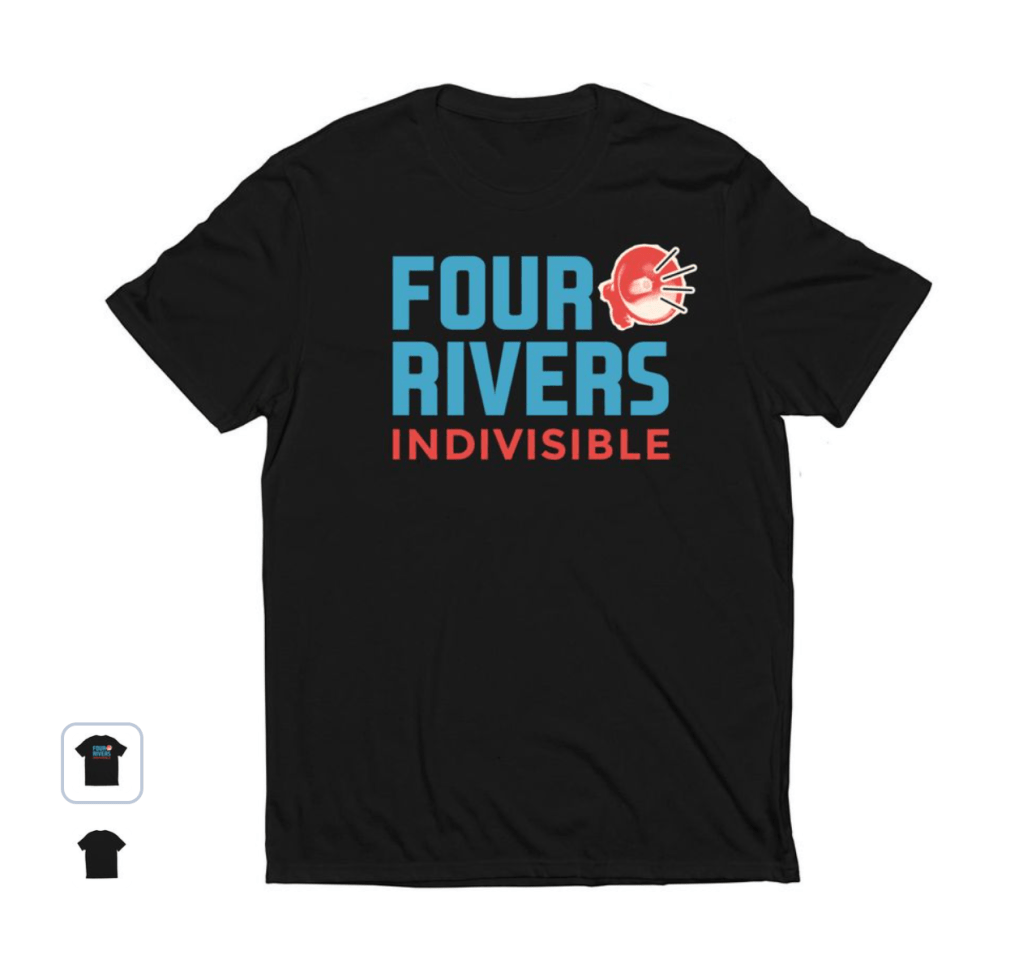 Support Four Rivers Indivisible by purchasing a t-shirt or sweatshirt in our bonfire.com store. A $10 donation to FRI is included in every purchase.